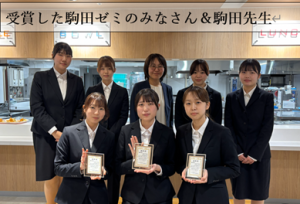 表彰式では、主催者である株式会社EVERYFOOD様より、受賞作品に対する講評に加え、実際の提供を想定した調理工程をご紹介いただきました。献立作成や大量調理を考える上で、今後の学びにつながる大変貴重な機会となりました。