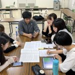 小論文・作品コンクールに応募するため、少子高齢化社会、地方の活性化について調べています。ゼミのグループで津市へインタビュー調査にいき、その結果をまとめ、問題点と解決策の提案を議論しているところです。